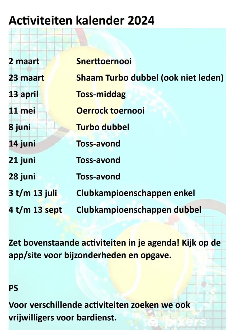 ACTIVITEITEN KALENDER TENNIS